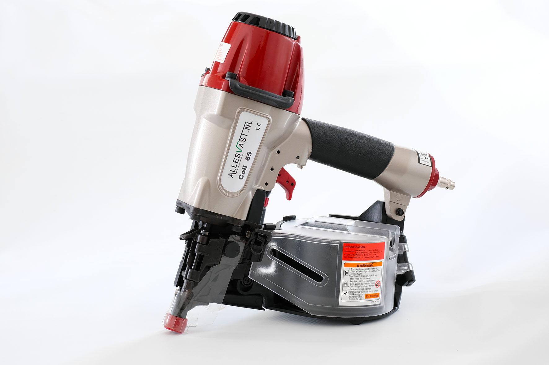 Onze coilspijkermachine functioneert optimaal bij een werkdruk van 6 tot 8 bar, wat zorgt voor een stabiele en krachtige werking zonder risico van overbelasting. Met een gewicht van slechts 2600 gram is de machine licht genoeg voor langdurig gebruik zonder vermoeidheid.